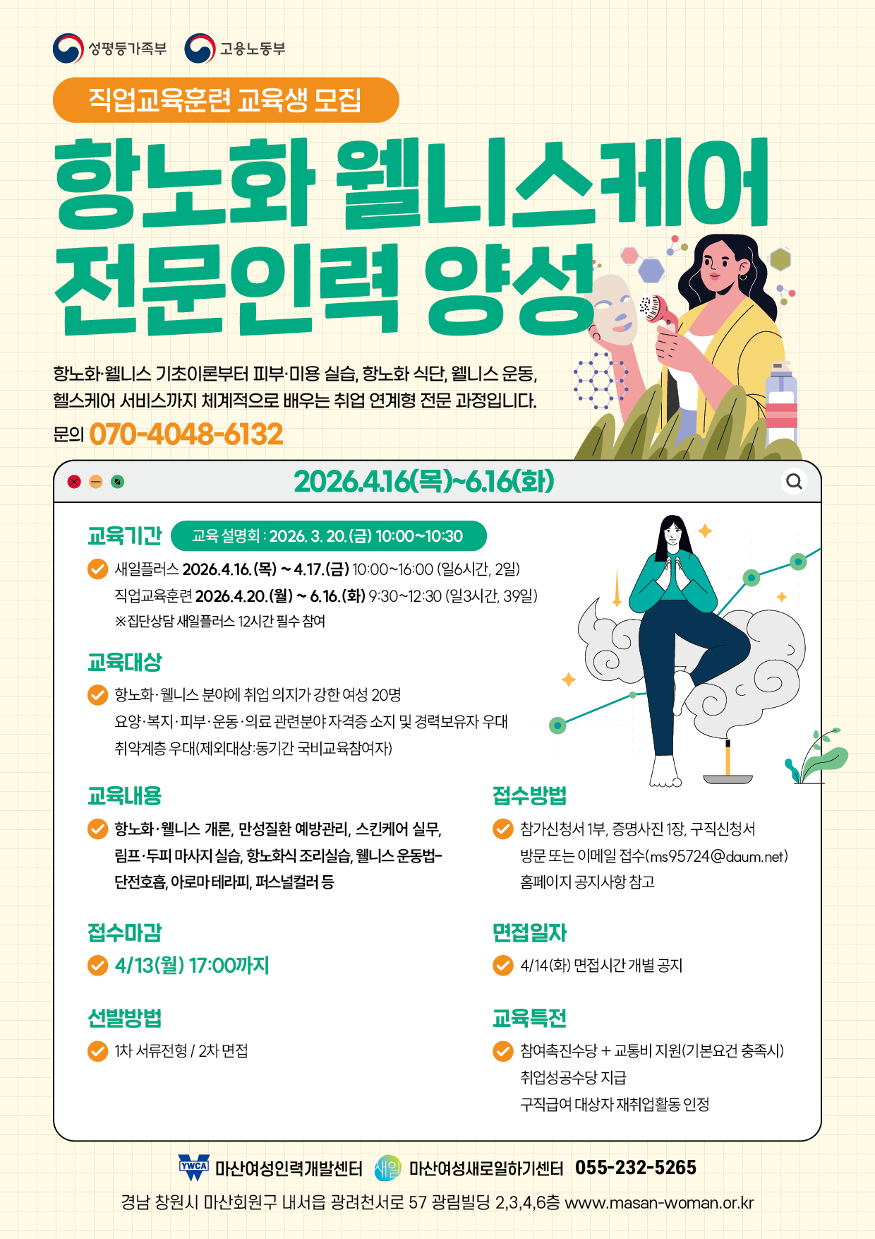 ■ 교육설명회 : 3월 20일 (금) 10:00 / 마산여성인력개발센터 201호 ■ 참가신청서, 구직신청서 다운로드 → 이메일 ms95724@daum.net 또는 방문 접수
