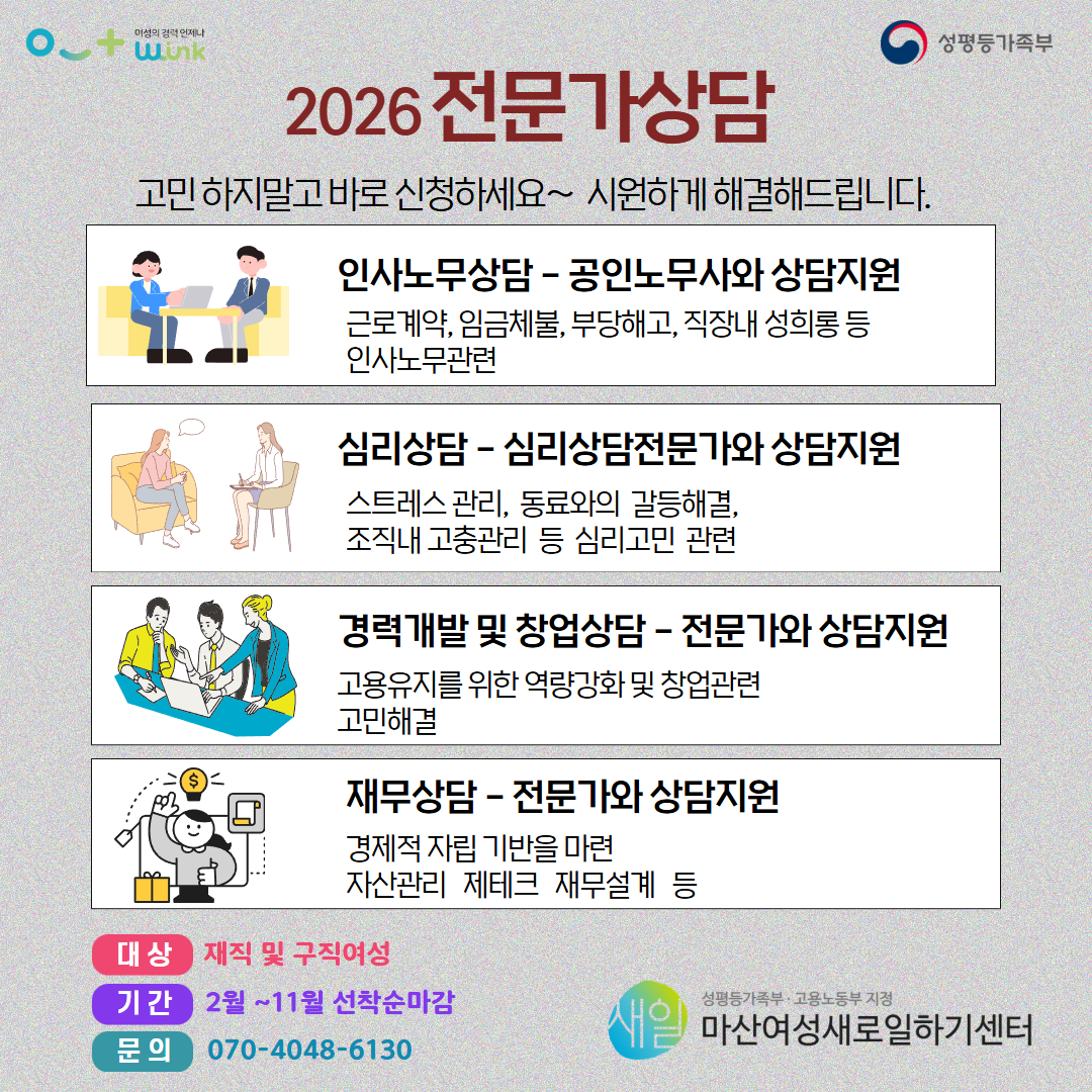 2026 경력단절예방지원사업 [전문가상담] 참여자 모집!!