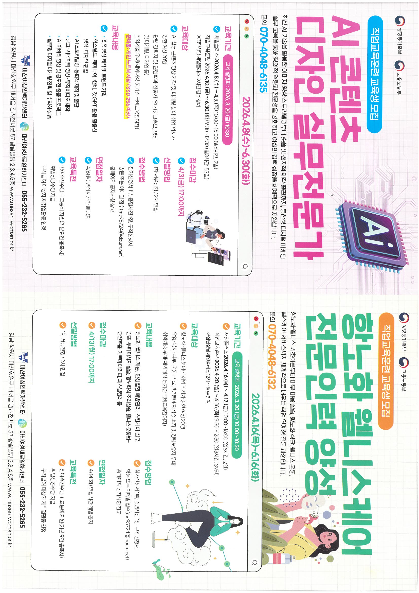 ◇ 설명회 일시 : 2026. 3. 20(금) 10:00 ◇ 설명회 장소 : 마산여성인력개발센터 3층 302호(내서읍 광려천서로 57 광림빌딩) ◇ 신청문의 : 070-4048-6132, 070-4048- 6135
