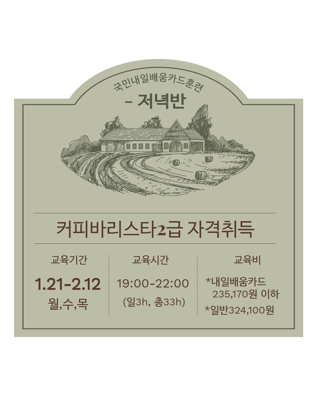 수강료119,160 원(교재비포함)/내일배움카드 41,710원 / 없음
