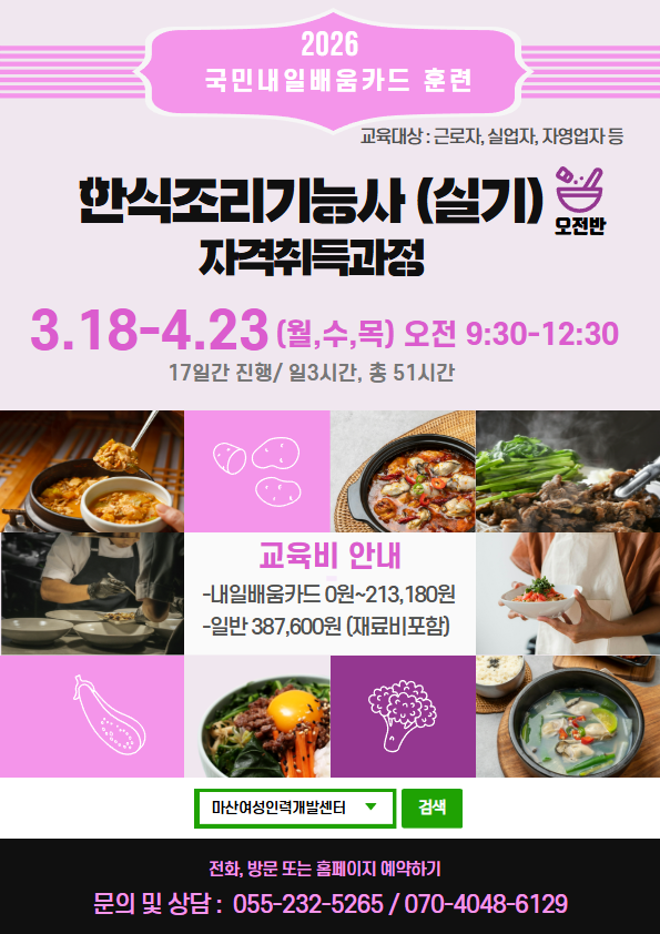 수강료0원~213,180원(내일배움카드)/일반 387,600원(재료비포함) / -